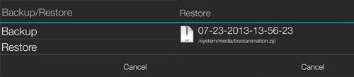 3. افتح التطبيق ثم اختر النسخ الاحتياطي / استعادة من خلال خيارات القائمة. النسخ الاحتياطي الرسوم المتحركة التمهيد الأصلي الخاص بك عن طريق التنصت النسخ الاحتياطي . (يمكنك استعادة الرسوم المتحركة التمهيد الأصلي من هنا أيضا مع الخيار استعادة .)