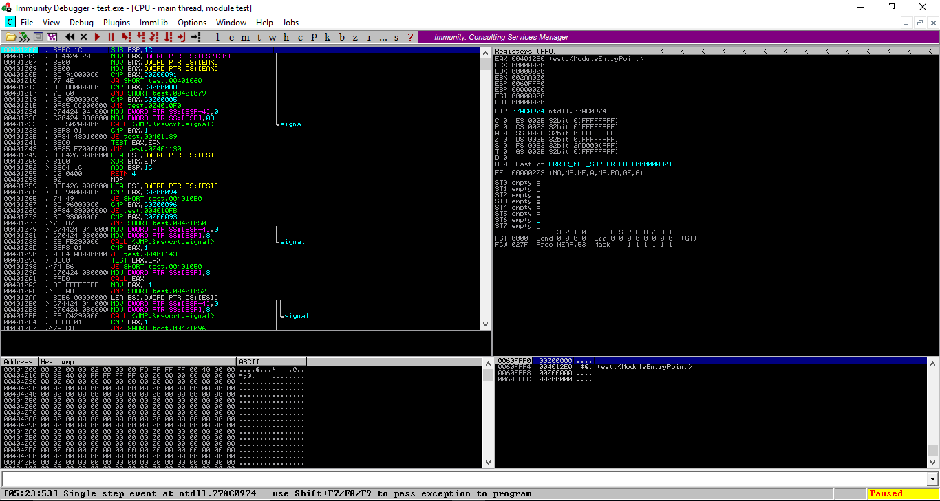 هناك برامج تستعرض لنا التعليمات التي قام المعالج بتنفيذها و توفر لنا أدوات لتحليلها تعليمة تعليمة تسمى هذه البرامج بالمترجمات المضادة أي decompilers و توفر لنا فحصا شاملا للملفات التنفيذية و تحليلها المترجم المضاد الذي سنستعين به هو Immunity debugger و هو مجاني و مفتوح المصدر