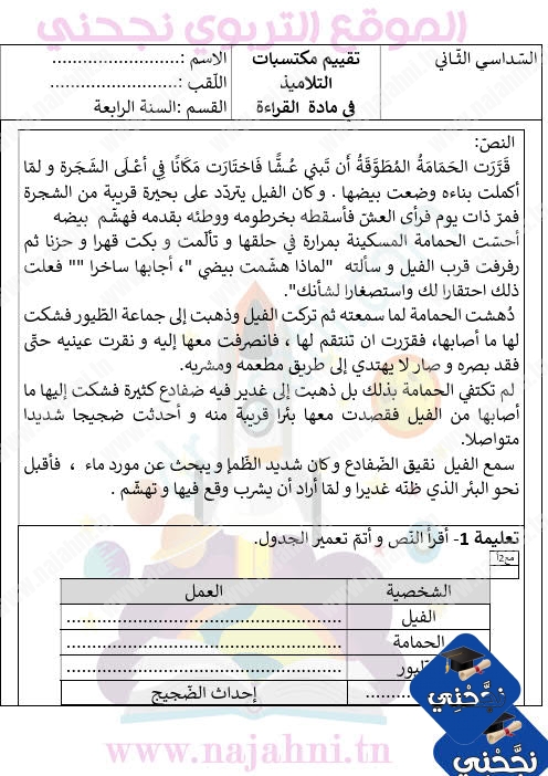 امتحان السداسي الثاني السنة الرابعة في القراءة. إمتحان قراءة سداسي ثاني -ثلاثي ثالث في تقييم مكتسبات التلاميذ في نهاية السنة الدراسية