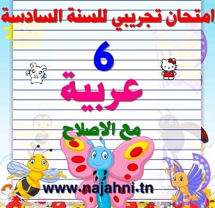 امتحان-اختبار تجريبي يخص السنة السادسة في مادة العربية ويحوي أهمّ أنواع الأسئلة التي يمكن أن تطرح مع الإصلاح.
