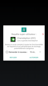 بعد تثبيت البرنامج و فتحه سيطلب منك إذن الروت Root Permission قم بالضغط على موافق Autoriser كما في الصورة:
